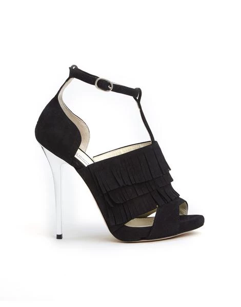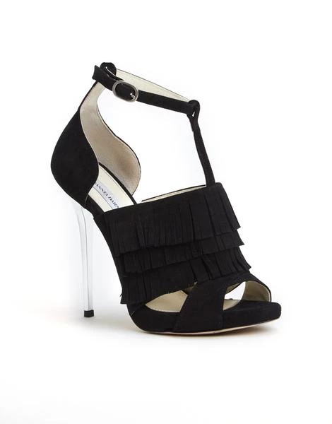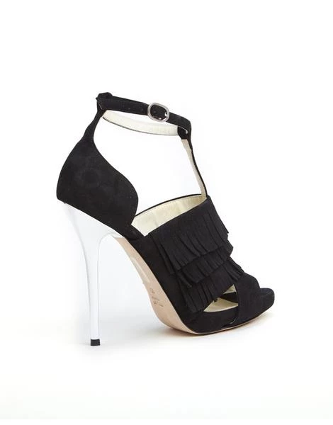 Leave Them Something to Remember You By. Jackie Is 4.5 Inches of Fun-Loving Platform with A Triple Fringe Vamp, Silver Metal Heel And T-Strap. Dare to Wear Her in Sultry Black Kid Suede with This Season New Pant Suits or Something Flirty to Salsa the Night Away with The Girls.
