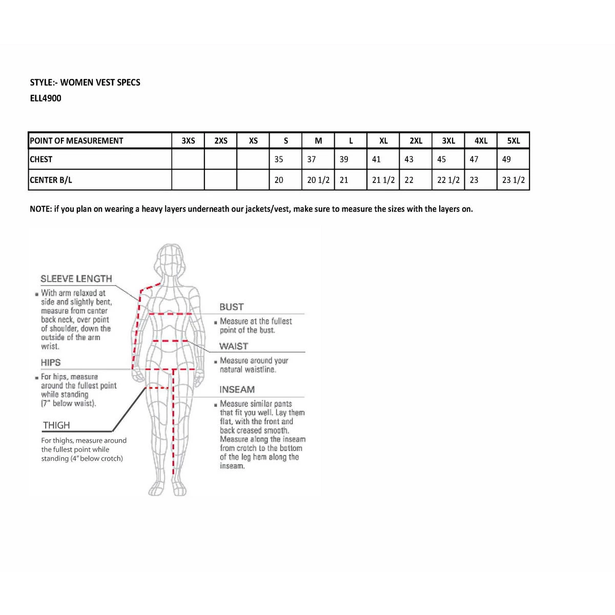 | Sizes | X-Small, Small, Medium, Large, X-Large, 2X-Large, 3X-Large, 4X-Large, 5X-Large |