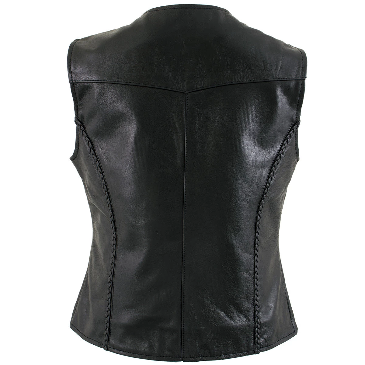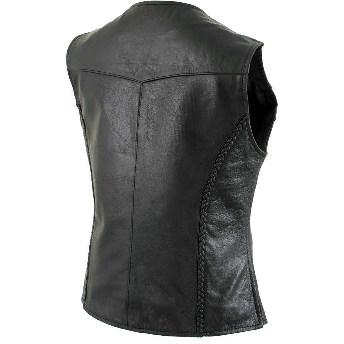 Xelement B206 Women’s ‘Road Queen’ Black Leather Braided Vest