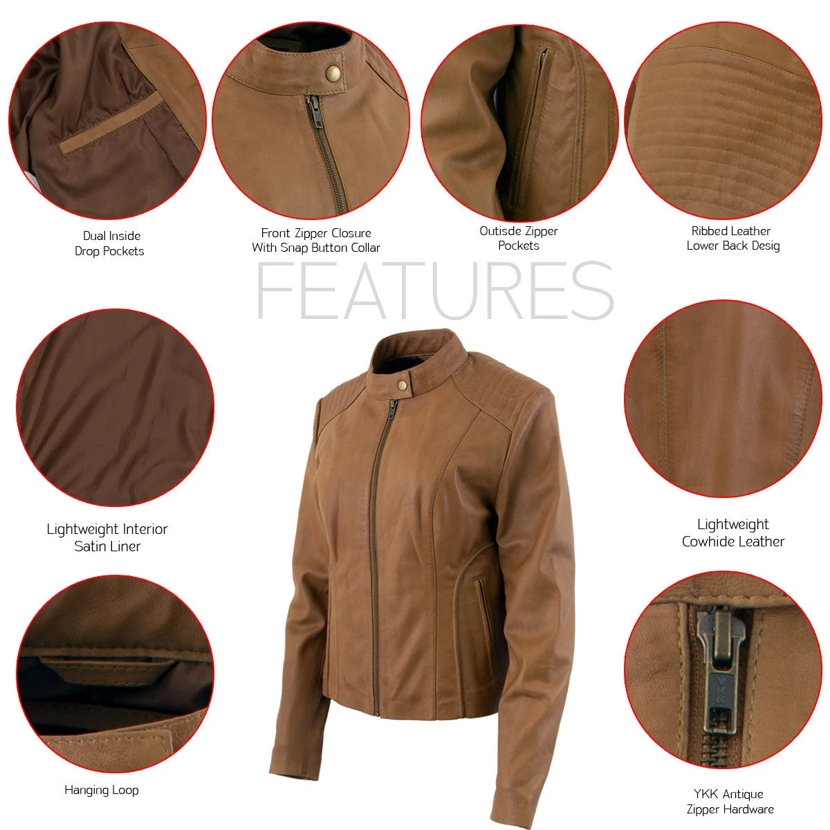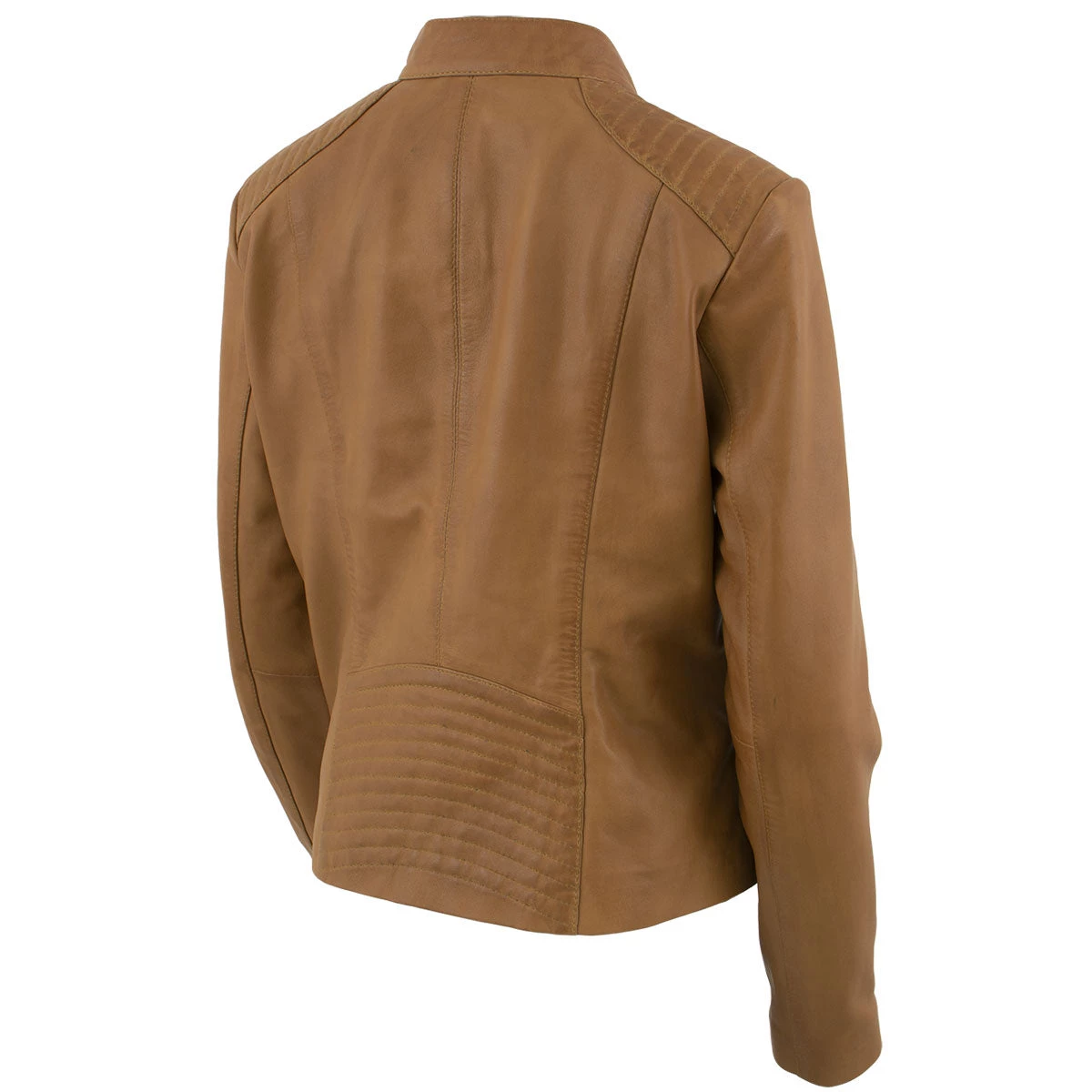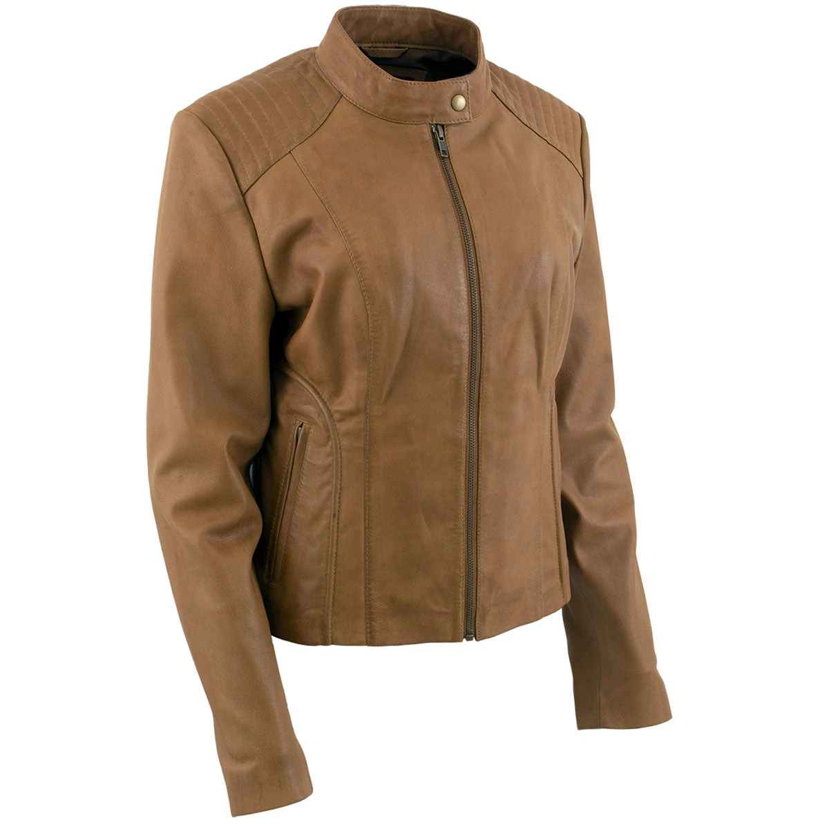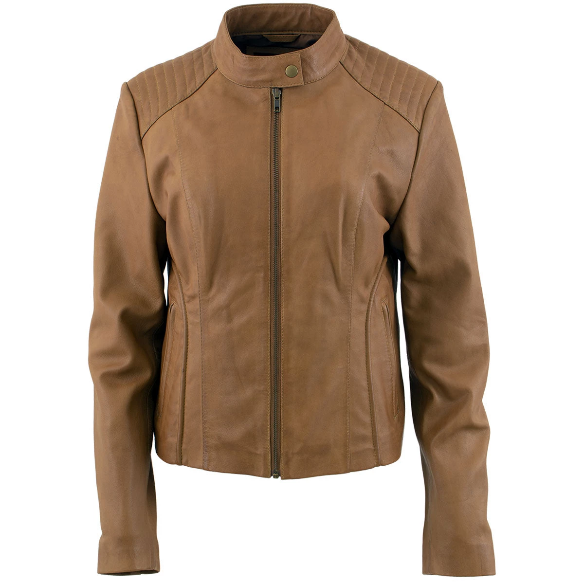 Xelement B91058 Women’s ‘Keeper’Cognac Leather Scuba Style Jacket with Snap Mandarin Collar