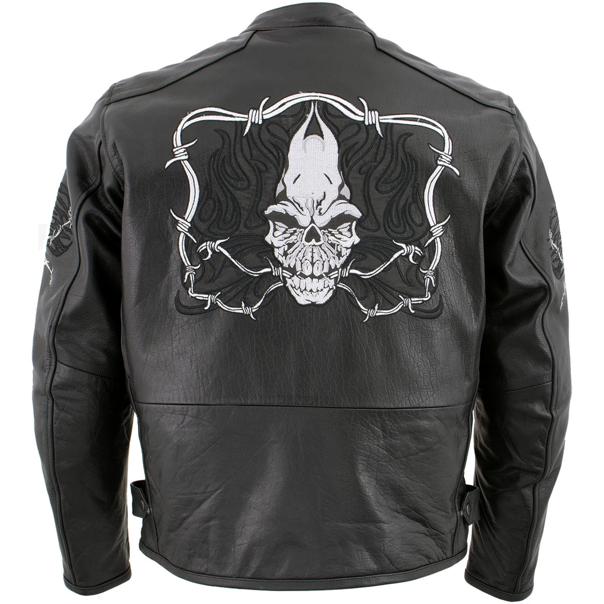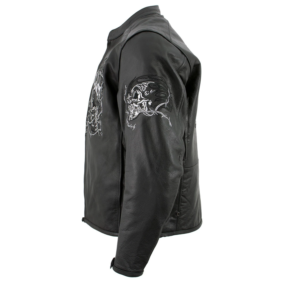 Xelement B95010 Men’s ‘Bones’ Black Cruiser Motorcycle Jacket with Reflective Evil Triple Flaming Skulls and X-Armor Protection
