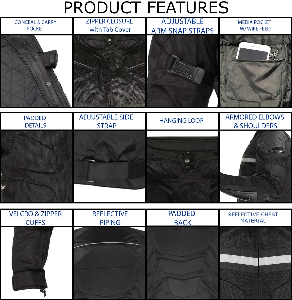 Xelement CF751 Men’s ‘Roll Out’ Black Tri-Tex Motorcycle Jacket with X-Armor Protection