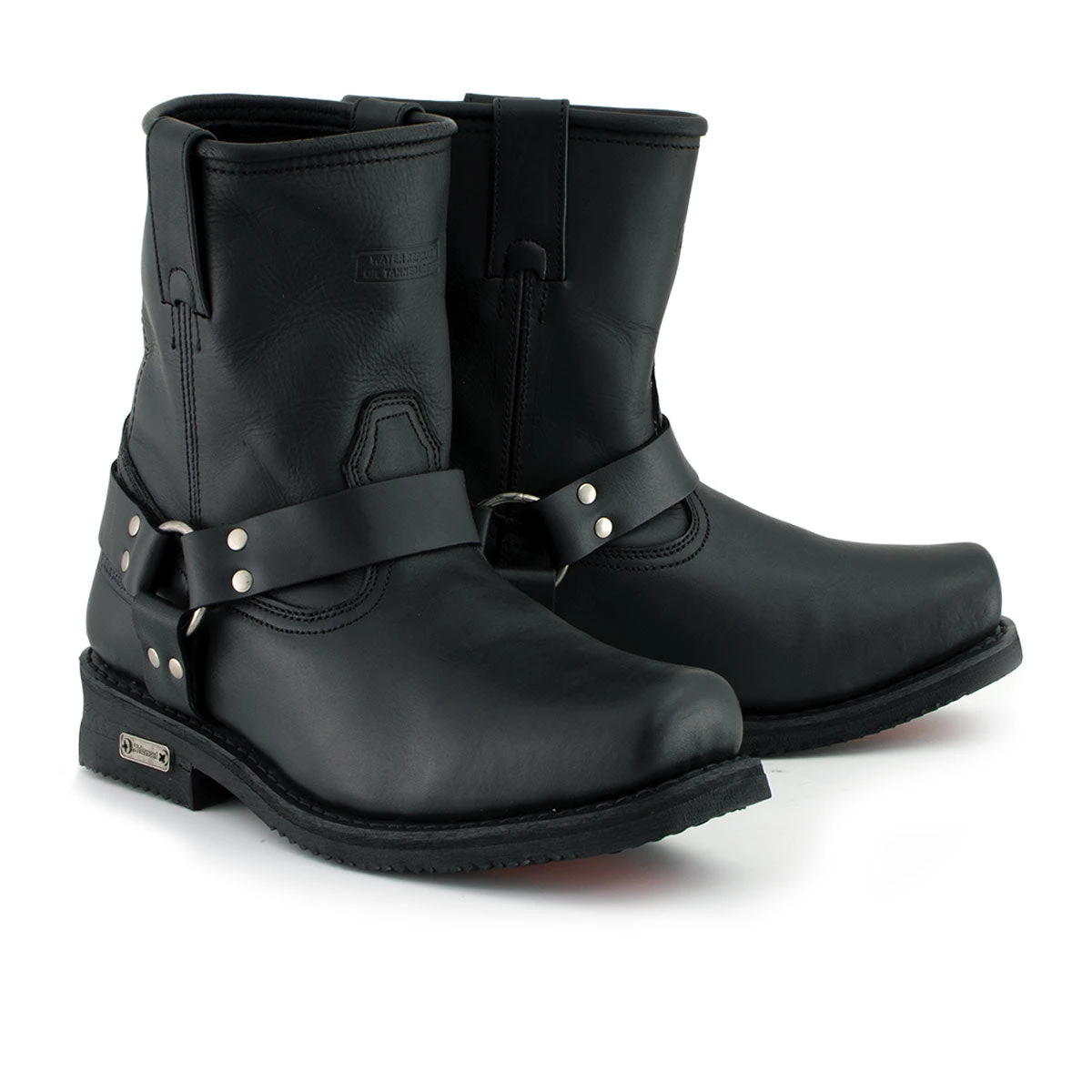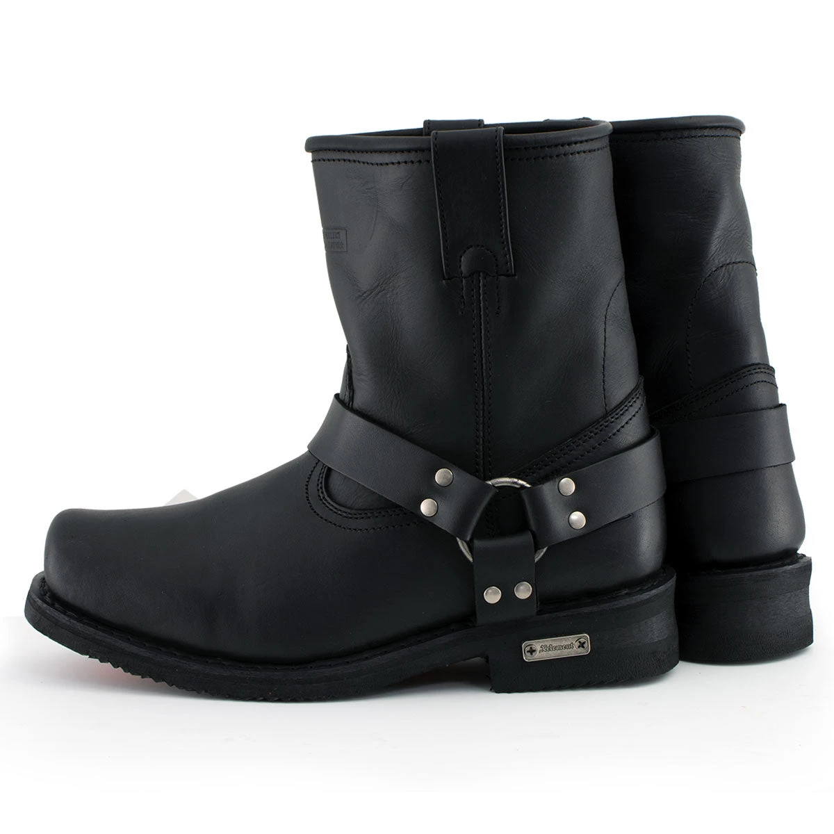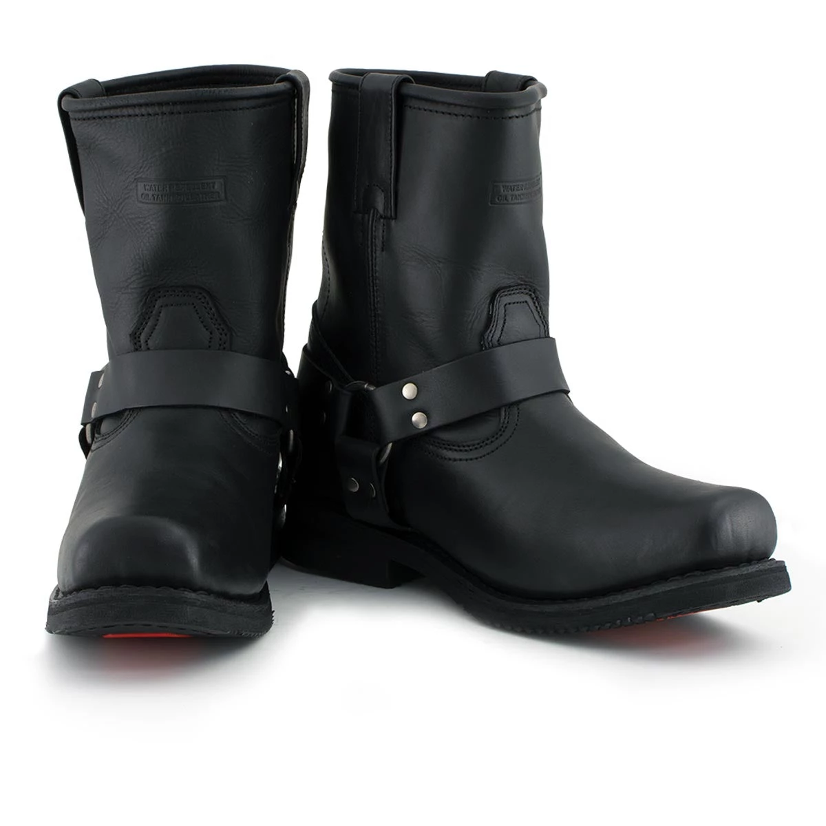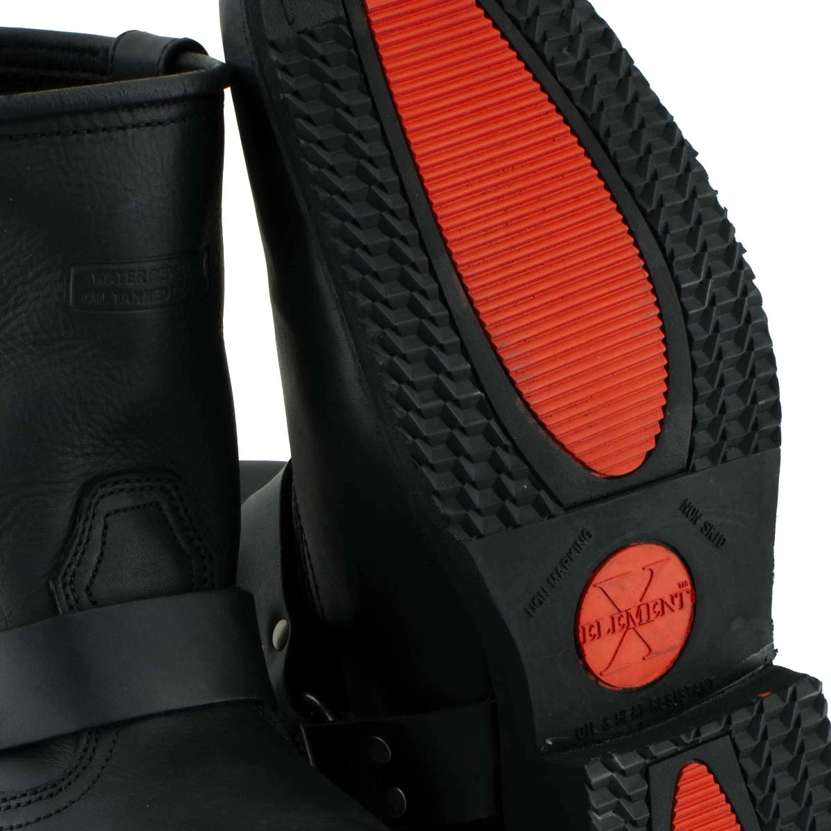 Top Quality Full Grain Leather Is Used to Construct the Most Technologically Advanced Motorcycle Biker Harness Boots Ever, The Xelement 1436 Men’s ‘Butch’ Black Leather Short Harness Motorcycle Boots with a Neoprene Oil-Resistant and Non-Marking-Sole. A Great Classic Look for A Harness Biker Boot with An Extra Heavy-Duty Designer Sole for Added Protection and Style. This Is a Shorter 8-Inch Version of The Popular 13-Inch Harness Boots for A More Fitted and Comfortable Boot. Features Goodyear Welt Construction, Which Stitches the Leather to The Non-Marking Rubber Outsoles and Gives You a Secure, Flexible Fit That’s Just Right. Sold Exclusively at Leatherup, The Most Popular Online Motorcycle Store.