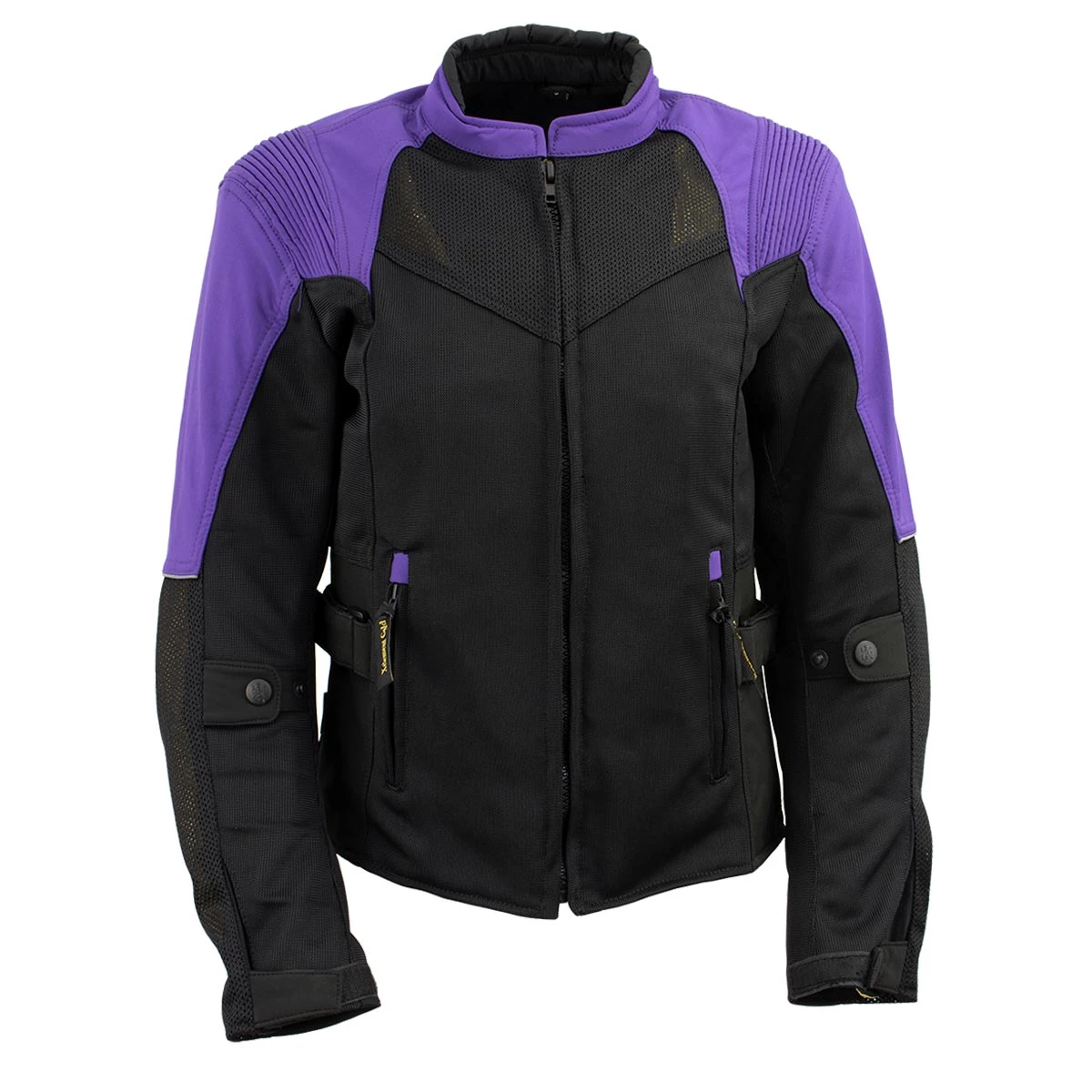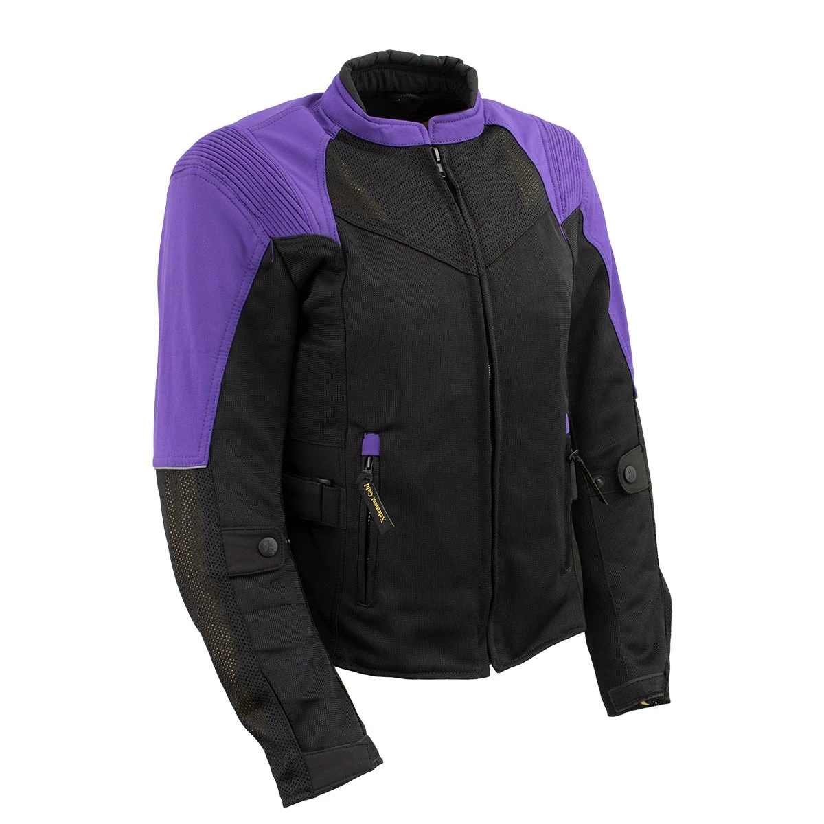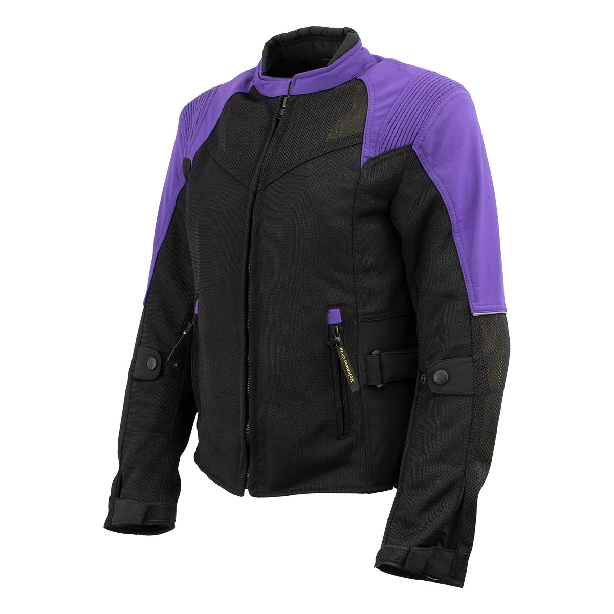 Xelement ‘Gold Series’ XS22008 Ladies ‘Be Cool’ Black with Purple Textile and Soft-Shell Motorcycle Jacket with X-Armor