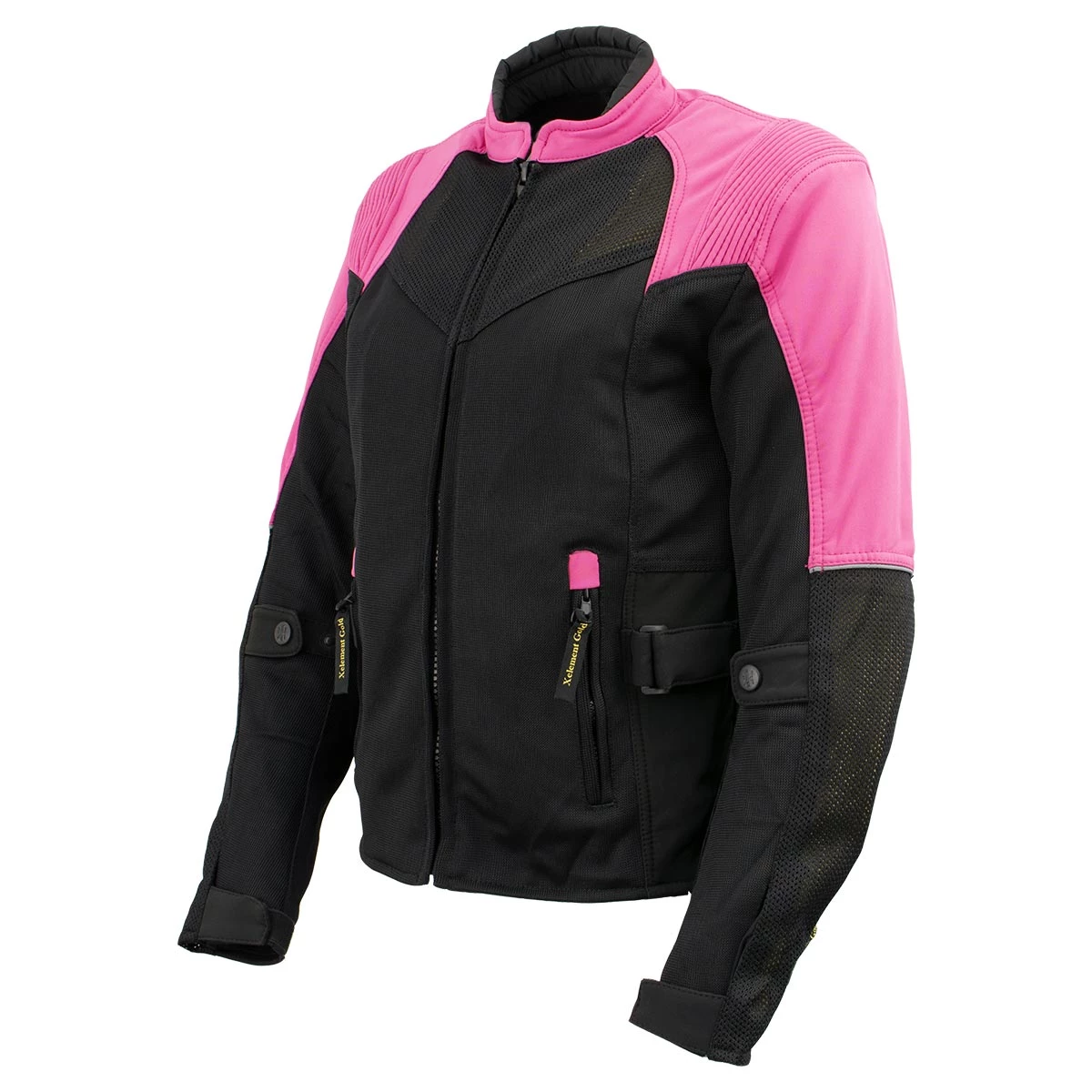 Xelement ‘Gold Series’ XS22009 Ladies ‘Be Cool’ Black with Fuchsia Textile and Soft-Shell Motorcycle Jacket with X-Armor
