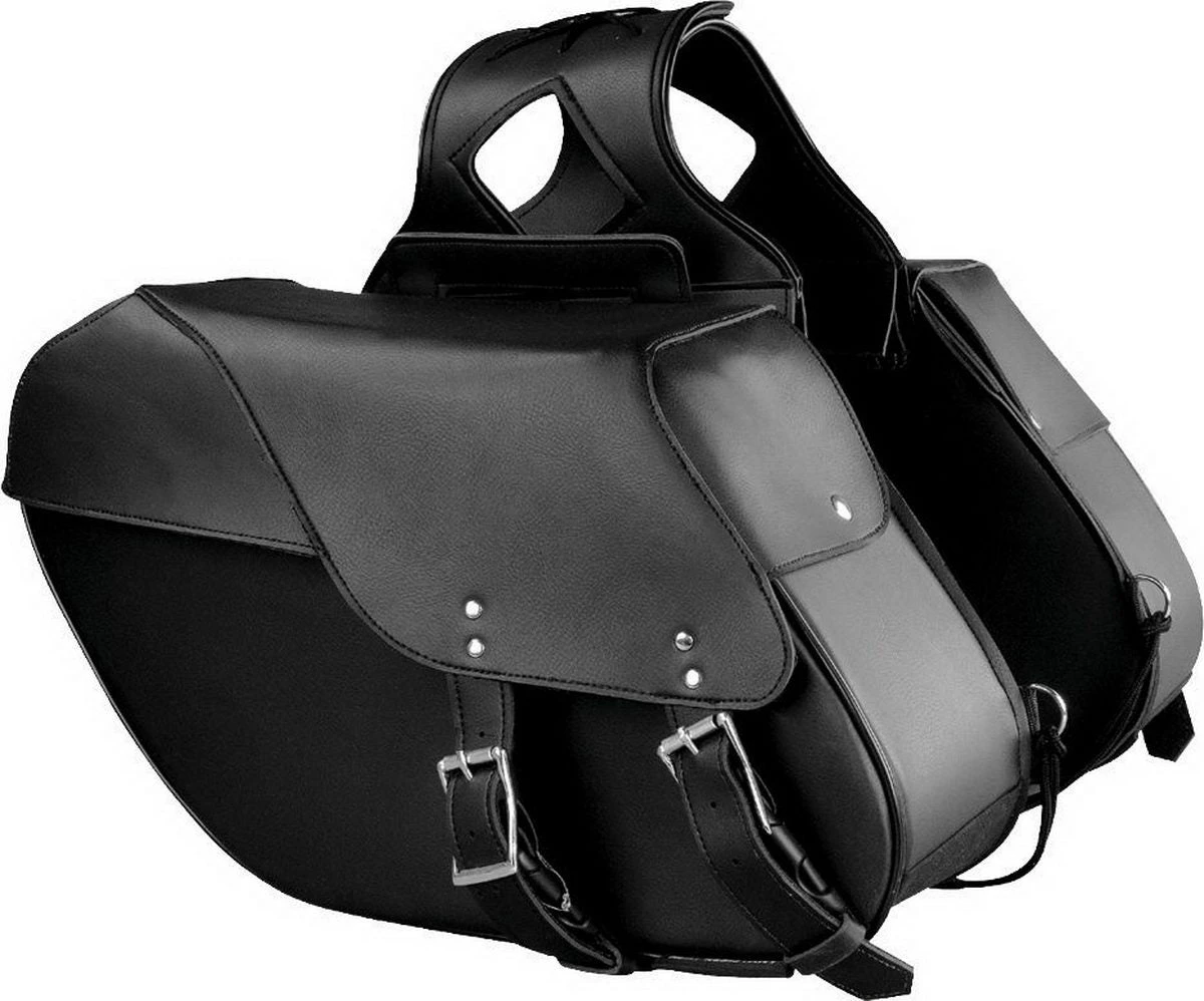 Xelement SH66901ZB Medium Size Black PVC Two Straps Throw Over Saddle Bag with Reflective Piping