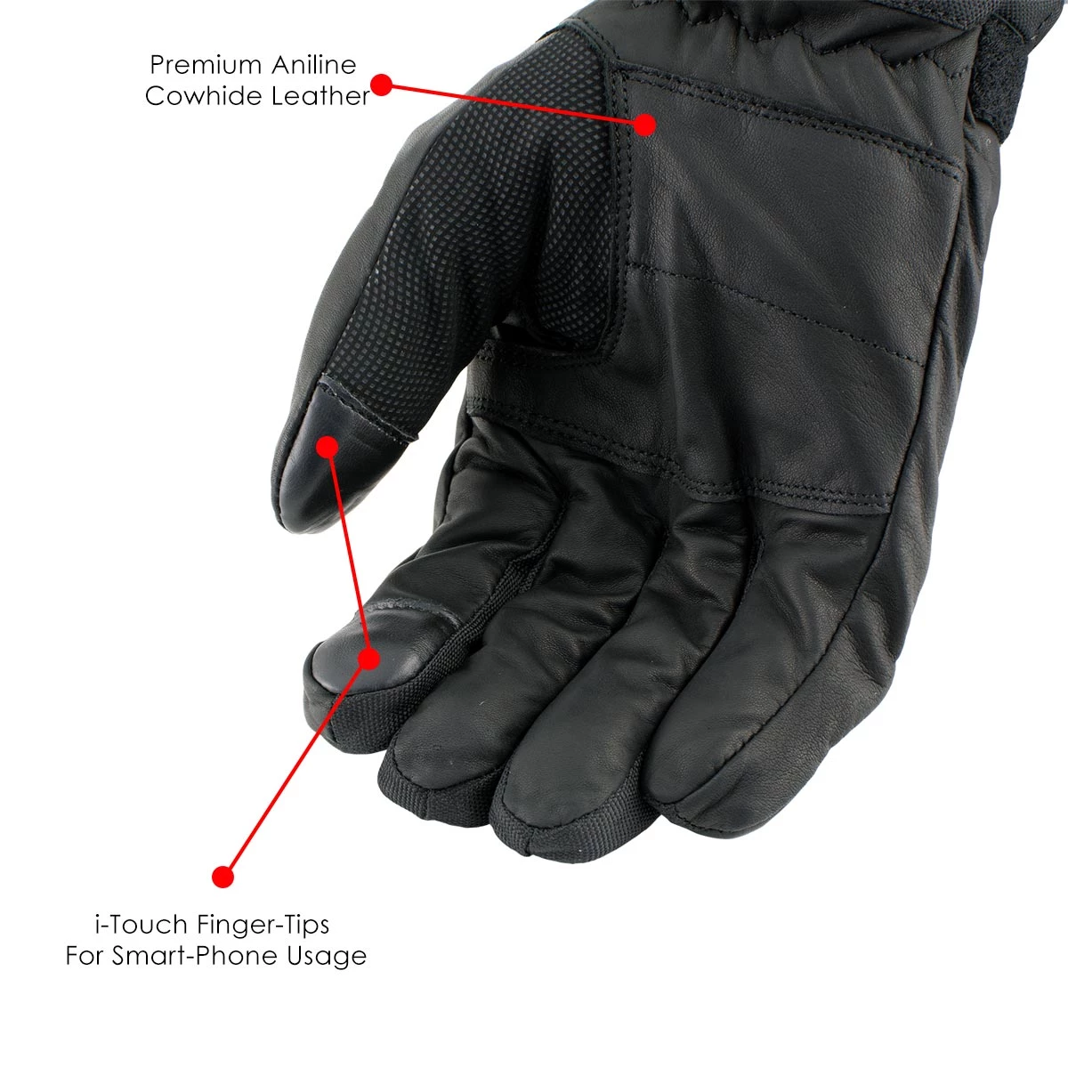 Xelement XG17501SET Men’s Black Heated Textile and Leather Combo Gauntlet Gloves with i-Touch Fingers (Included Battery Pack and Wire Harness )
