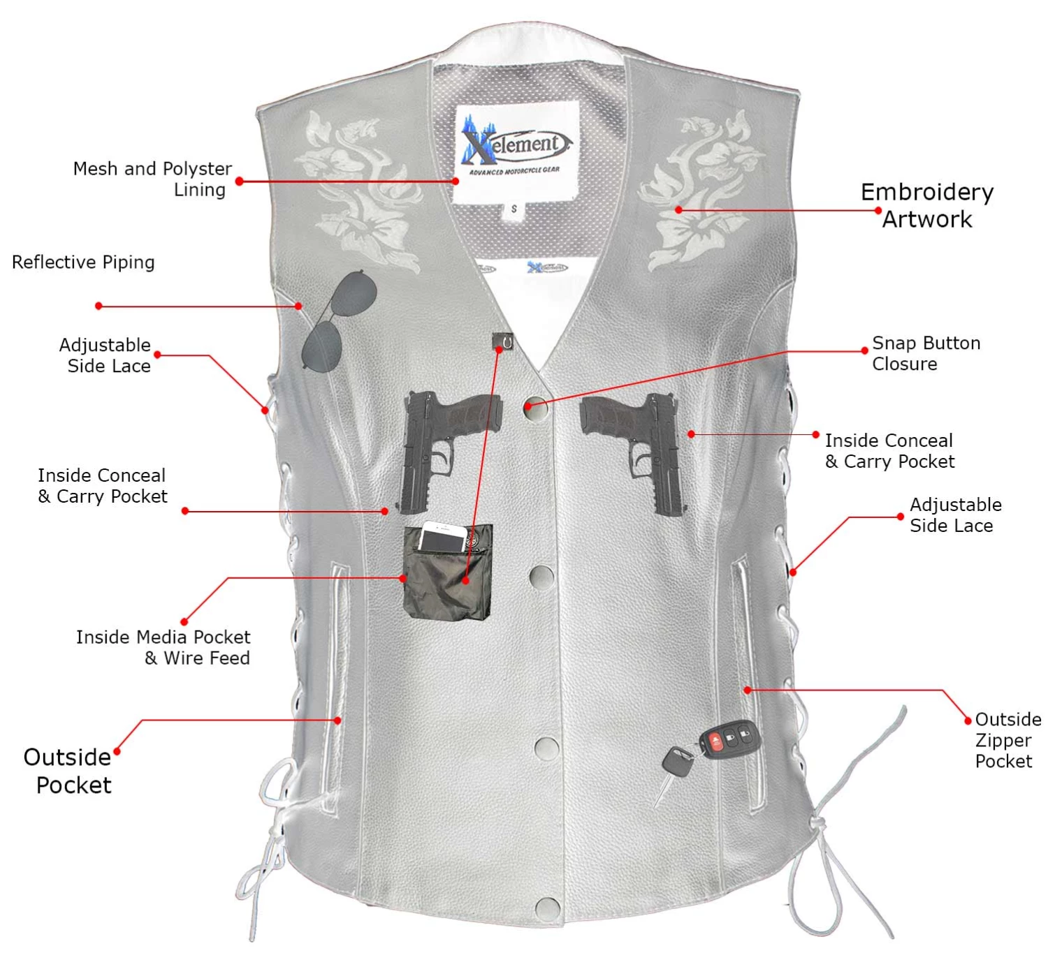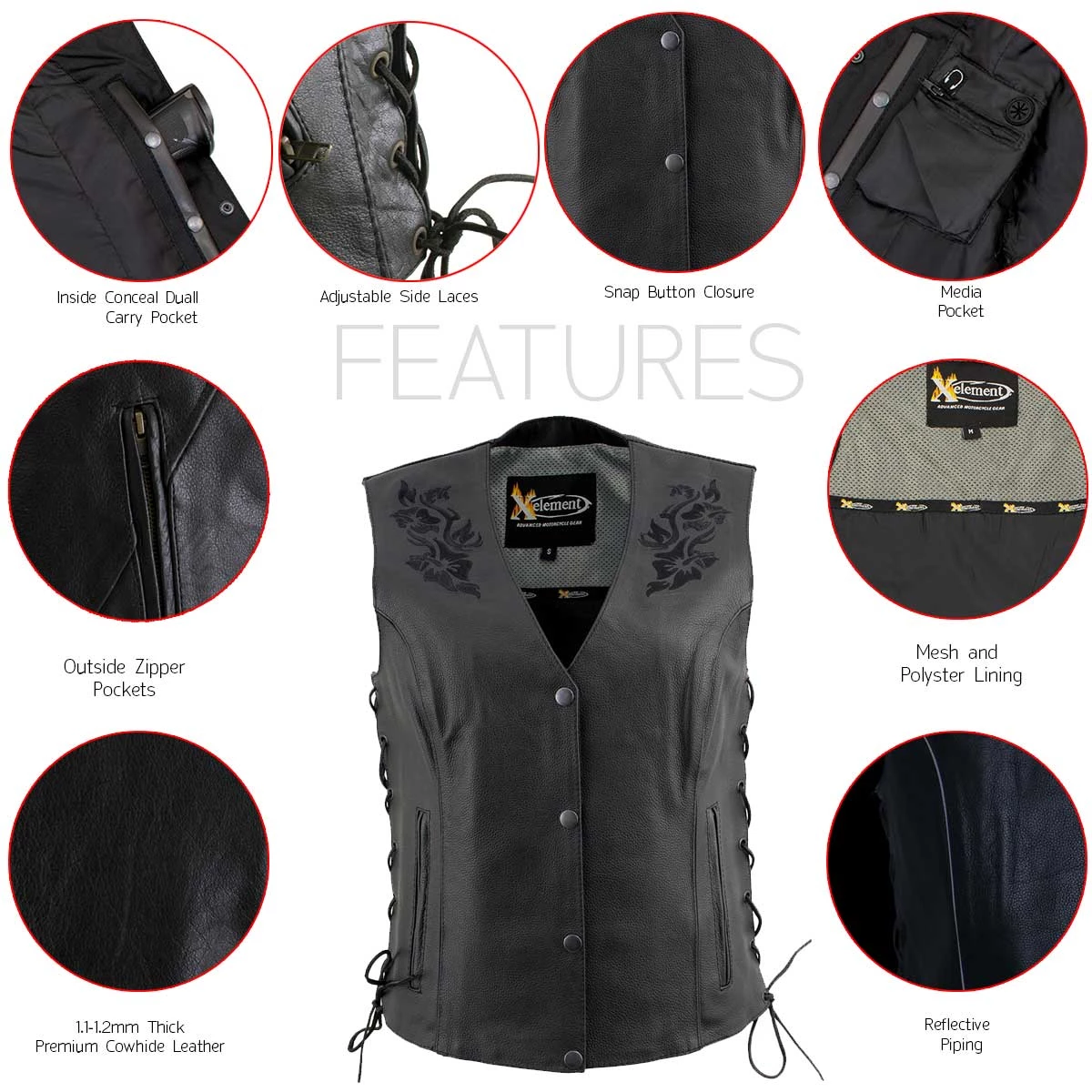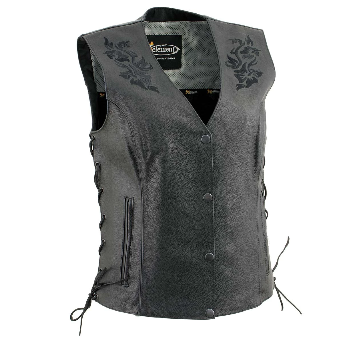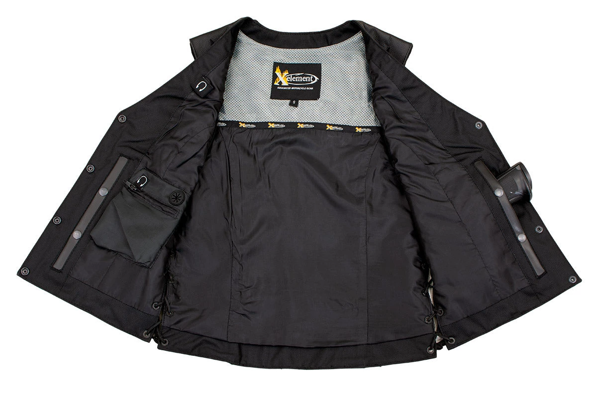 Xelement XS24004 Ladies ‘Gemma’ Black Leather Vest with Side Lace Adjustment
