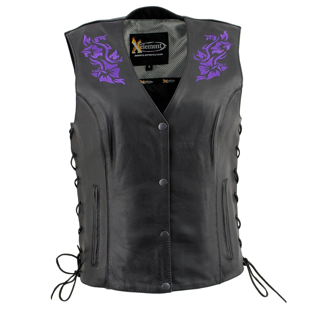 Xelement XS24005 Ladies ‘Gemma’ Black and Purple Leather Vest with Side Lace Adjustment