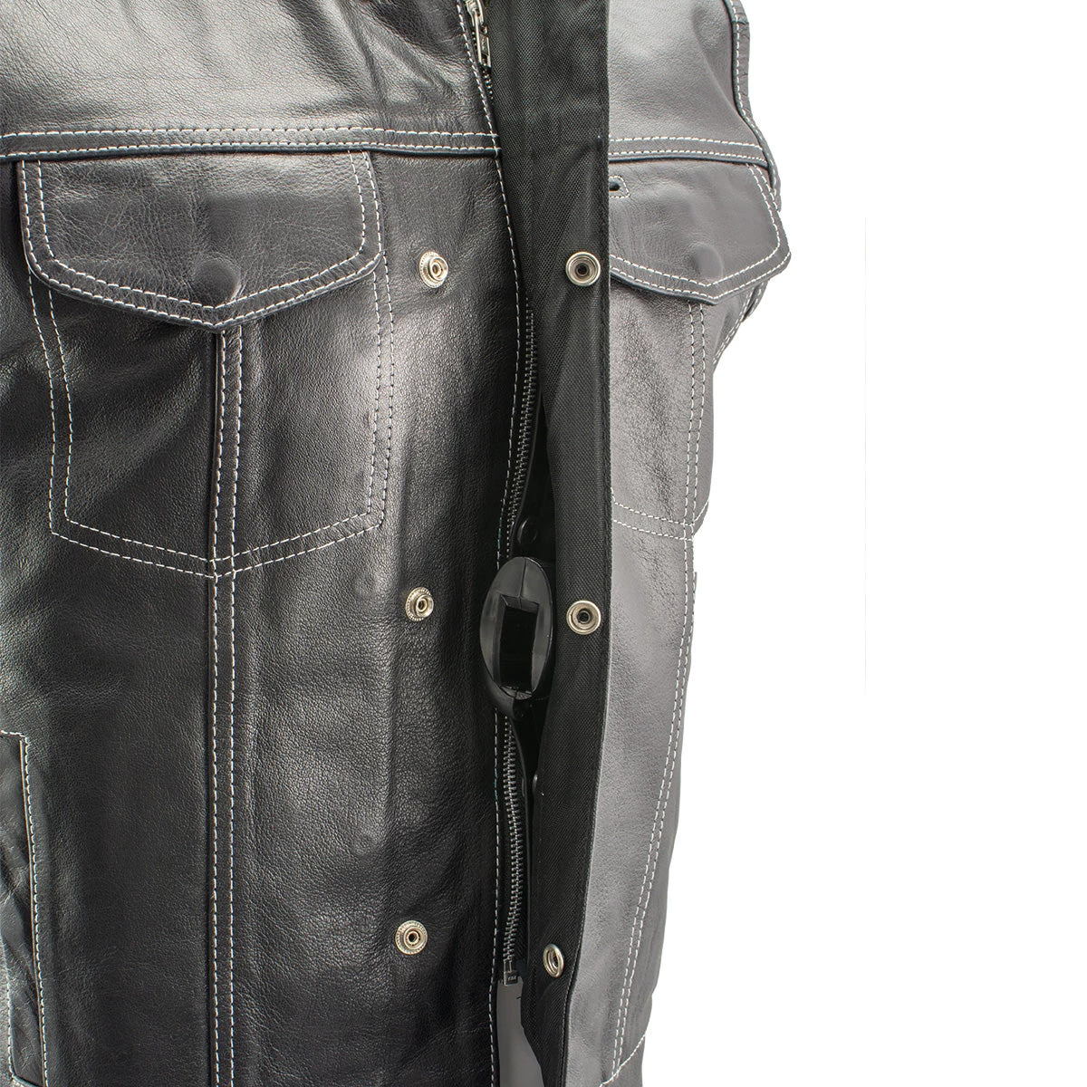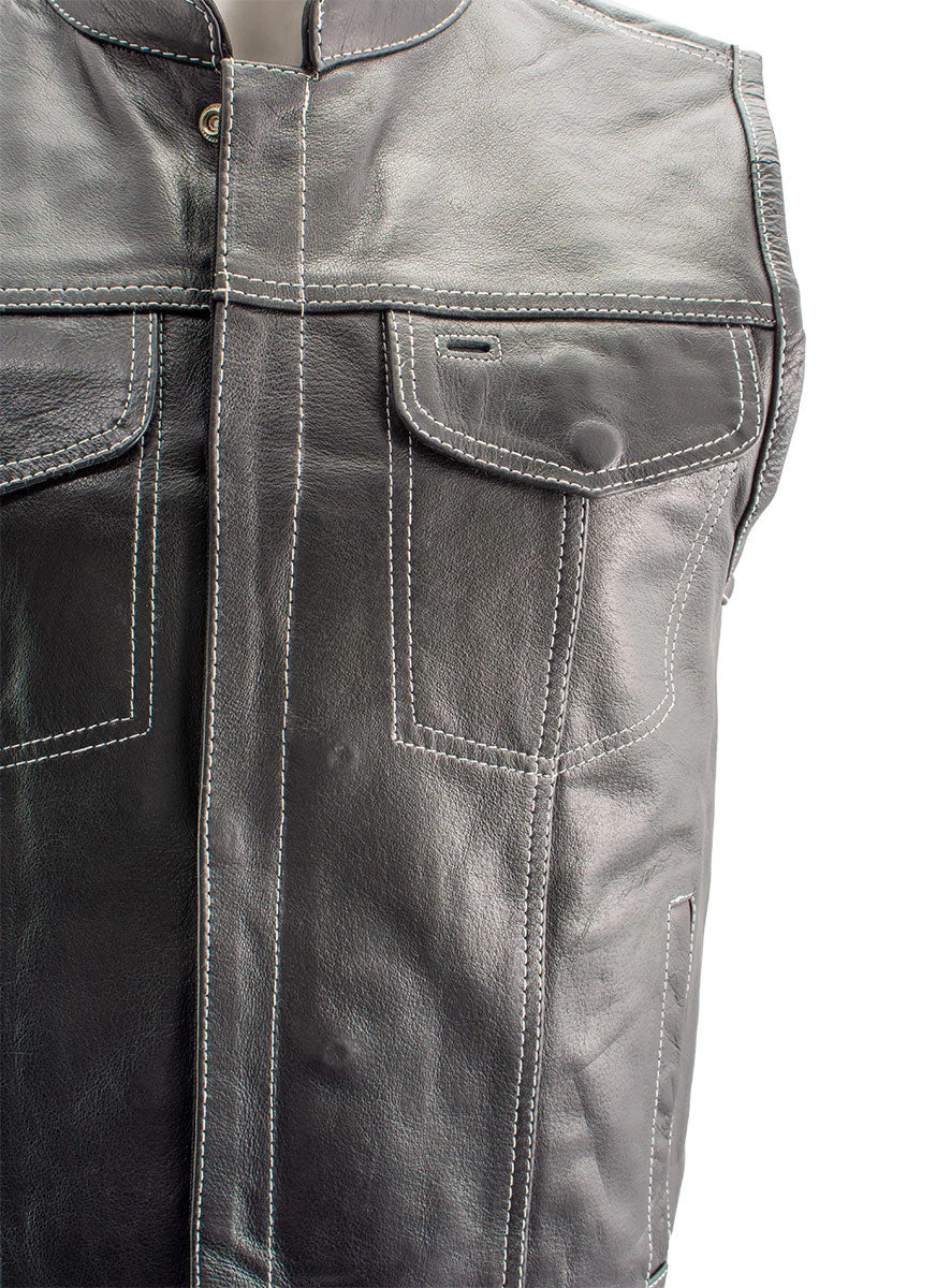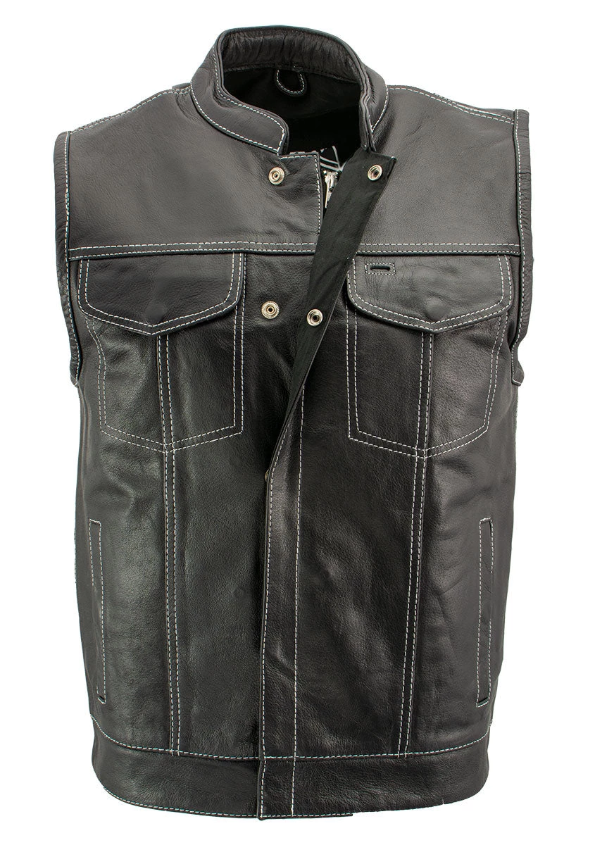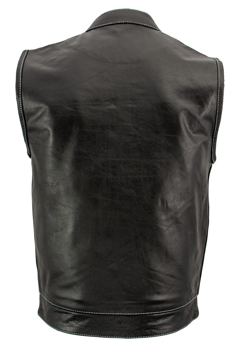 Xelement XS3450 Men’s ‘Paisley’ Black Leather Motorcycle Vest with White Stitching