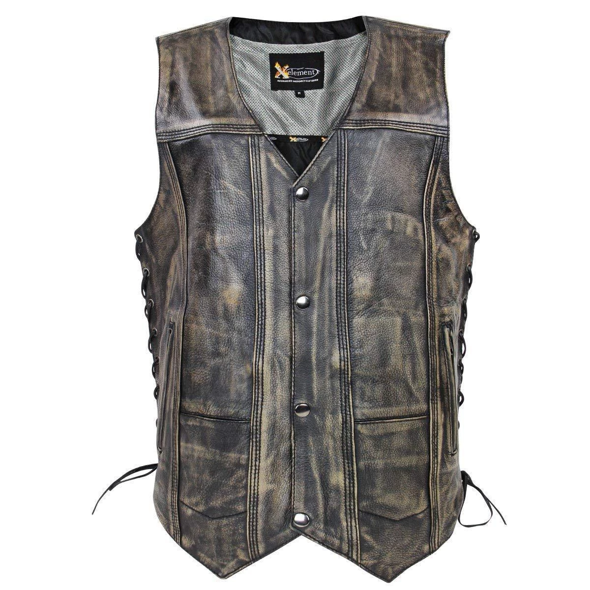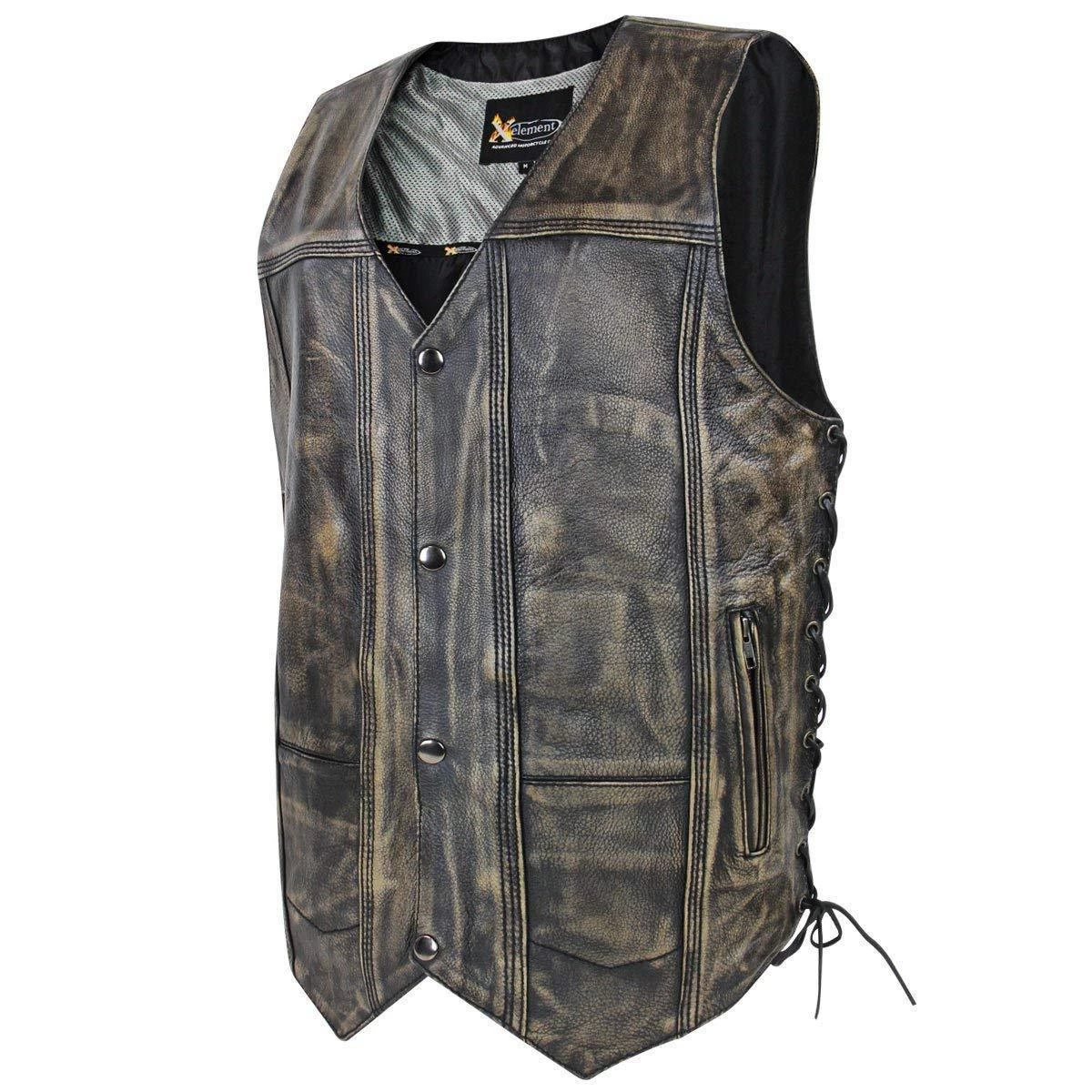 Xelement XS3540 Men’s ‘Wreck’ Distressed Brown Multi-Pocket Leather Vest