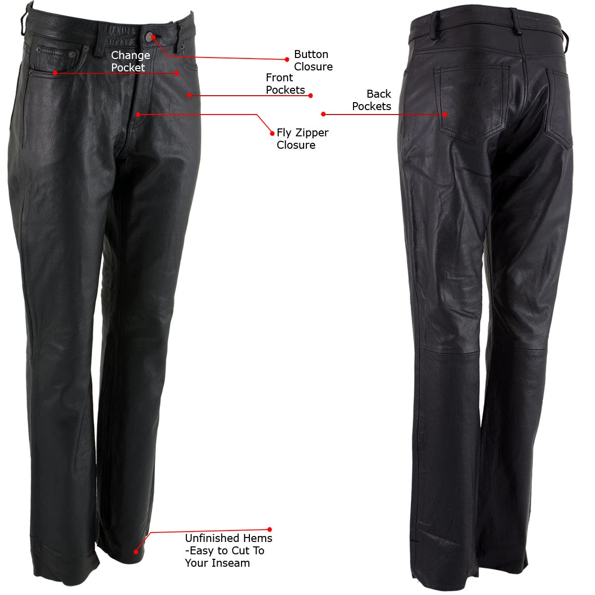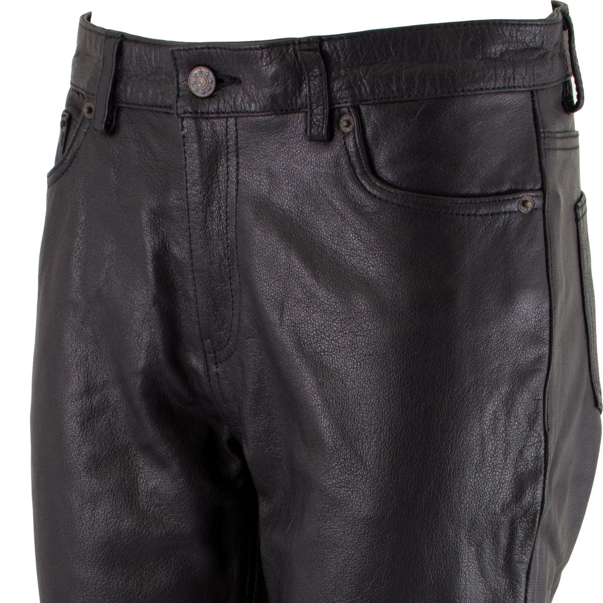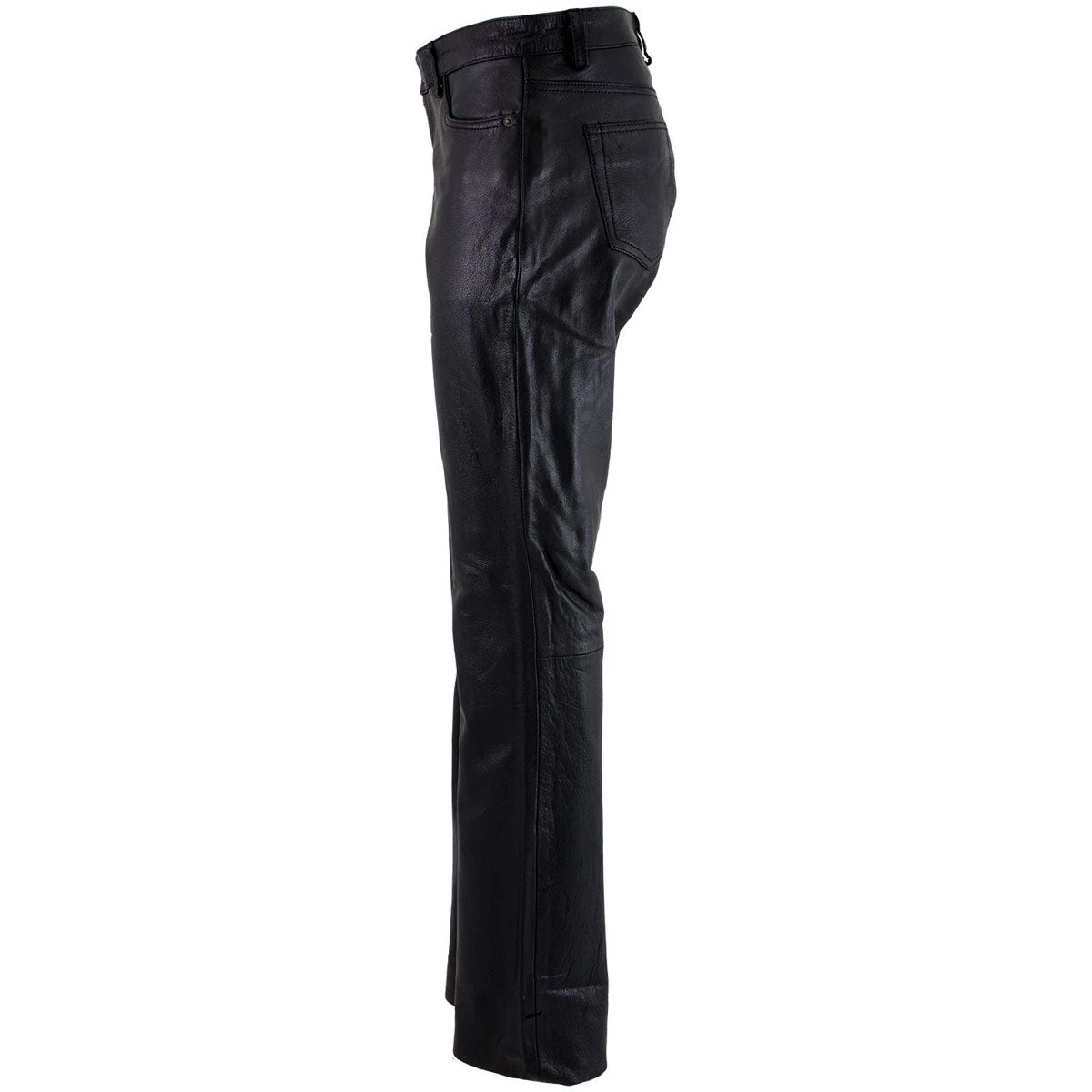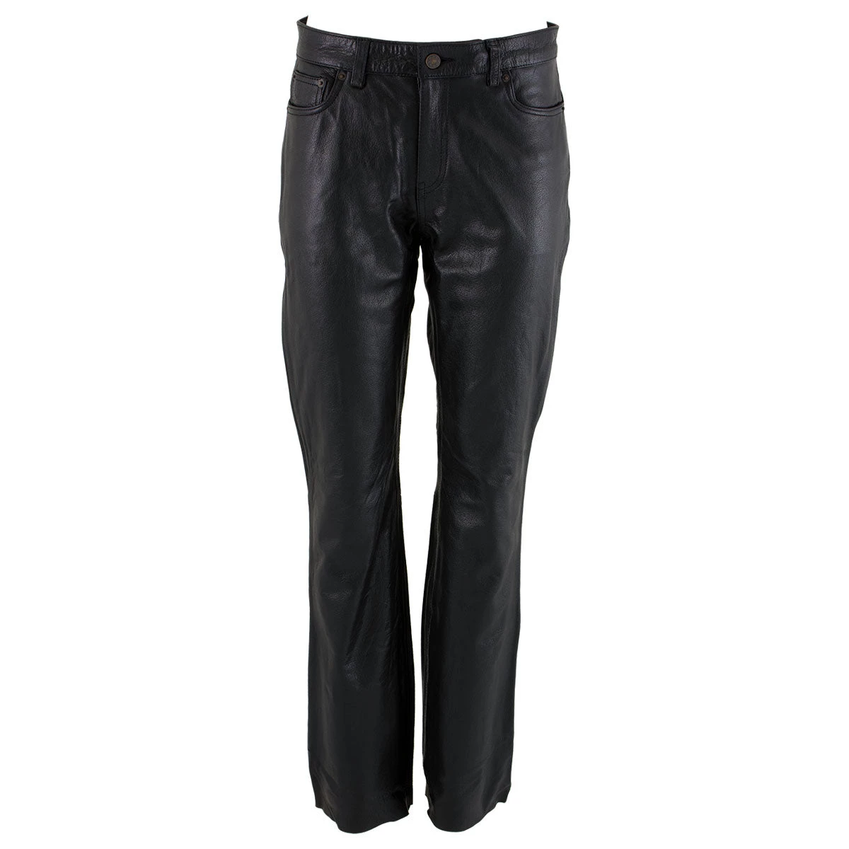 If You Like Wearing Jeans and Prefer a Slim, But Not Too Tight Fit, Then You Will Love Our Xelement Ladies ‘Nubile’ Classic Black Buffalo Leather Pants. A Stylish Pair of Leather Pants Made of Premium Buffalo Leather with a Smooth Texture. These Fit and Have the Same Design as Slim Straight Jeans, But with Premium Buffalo Leather Instead of Denim. These Pants Are an Ideal Companion to Any of Our Black Leather Jackets, Coats, or Boots. Features Five Pockets, Bronze Zipper Fly with Button Closure, and a Boot Cut Leg Opening.