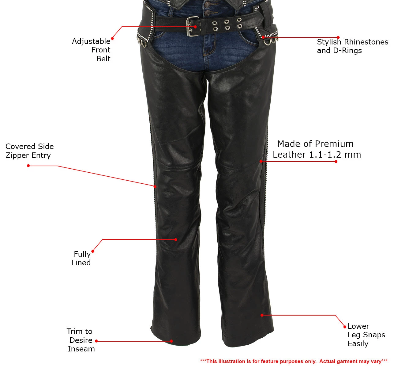 Xelement XS7591 Ladies ‘Bling’ Black Classic Leather Chaps